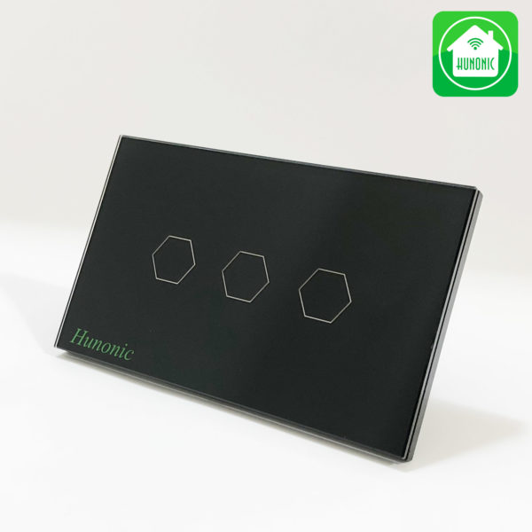Công tắc cảm ứng Hunonic 3 nút màu đen